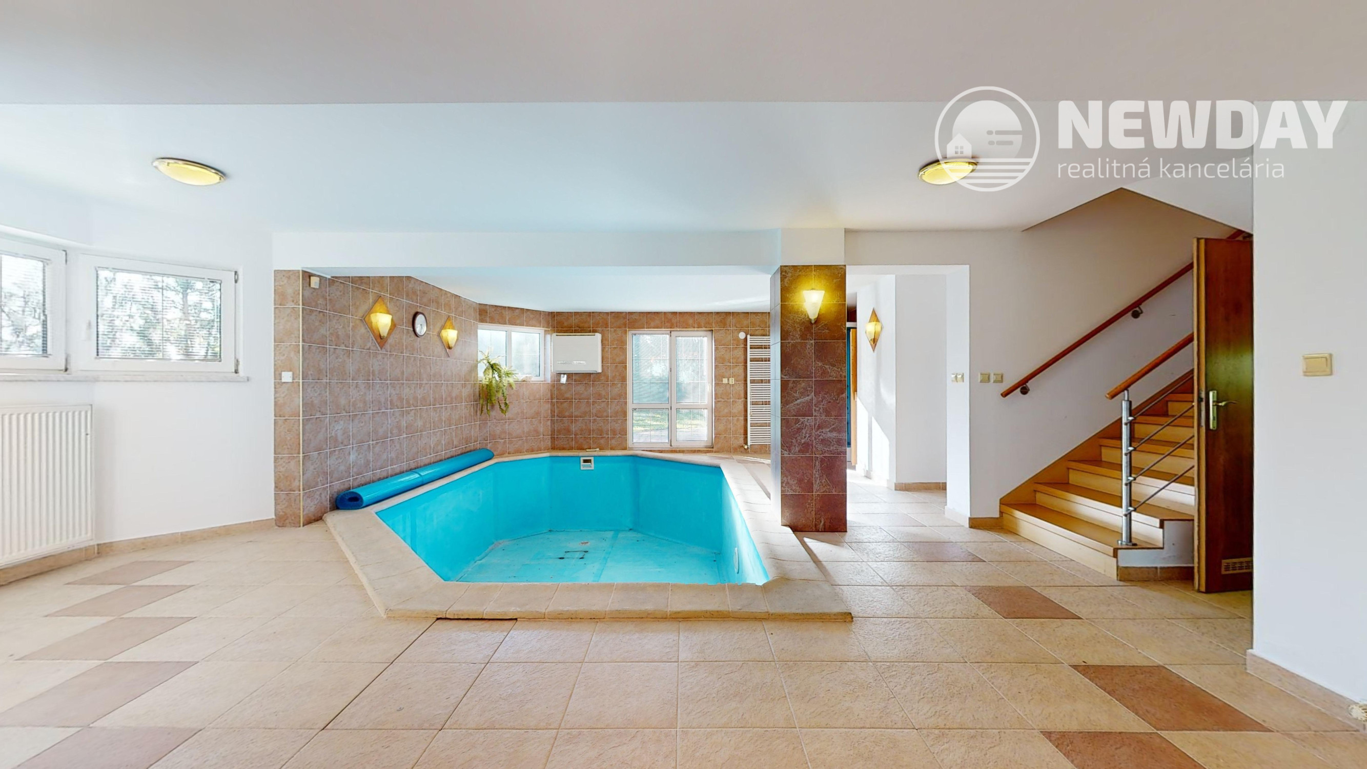 Dominantou I. PP je veľký priestor s bazénom priamo prepojený s garážou. Okolo neho je samostatná toaleta, kúpeľňa s práčovňou, malý sklad pod schodmi, sauna, technická miestnosť, schodisko vedúce na II. NP a v neposlednom rade môžete z neho vyjsť von na južnú stranu pozemku.