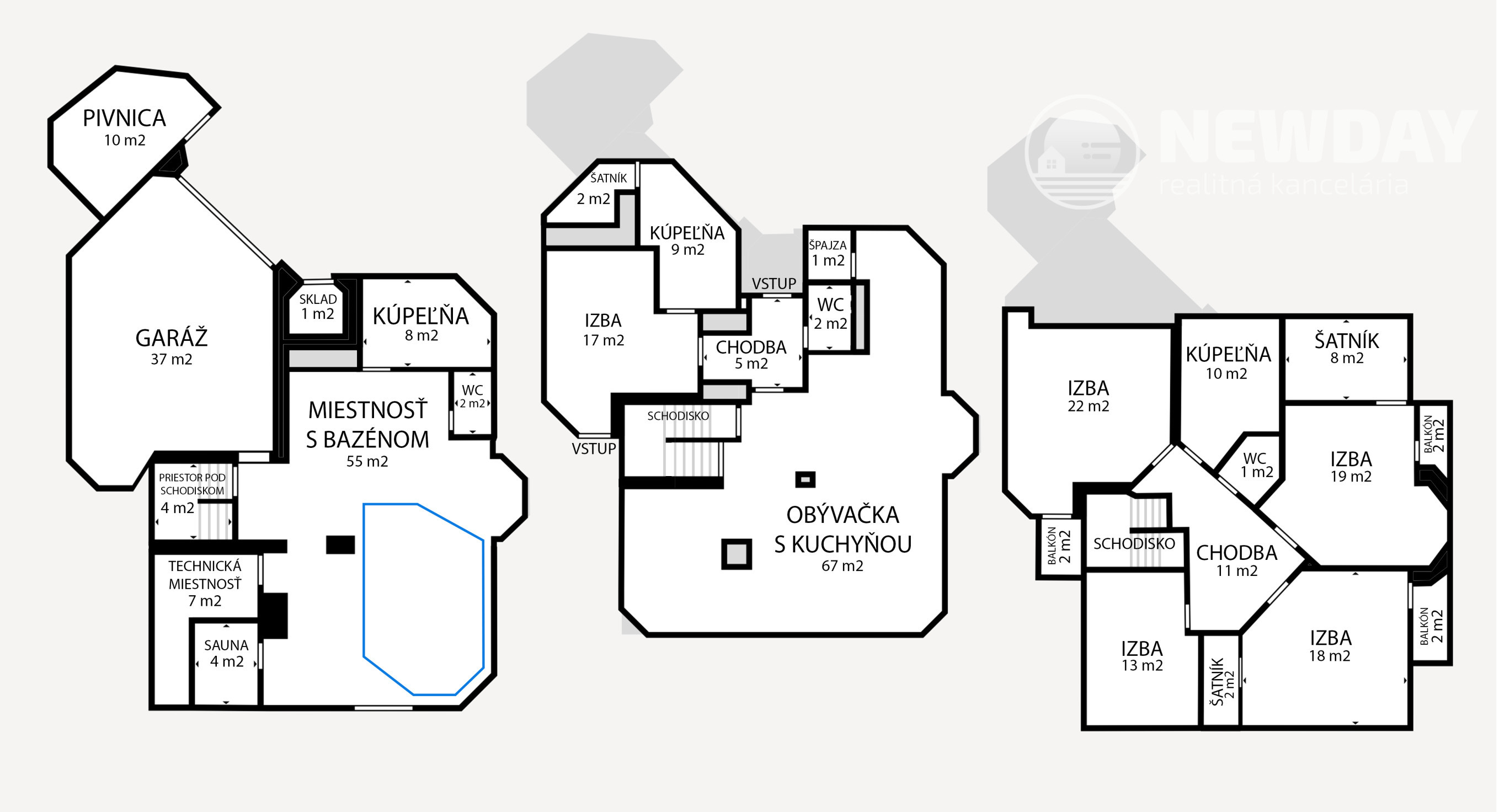 Tri podlažia poctivej stavby Vám ponúknu spolu až 400 m2 úžitkovej plochy (6 obytných izieb, kuchyňa, jedáleň, 3 kúpeľne, 3 toalety, bazén, sauna, garáž, skladové a podkrovné priestory,...), vonkajší priestor pre parkovanie a v neposlednom rade nádhernú záhradu s priestranným prístreškom, ktorý dá Vašim rodinným oslavám tie správne grády.