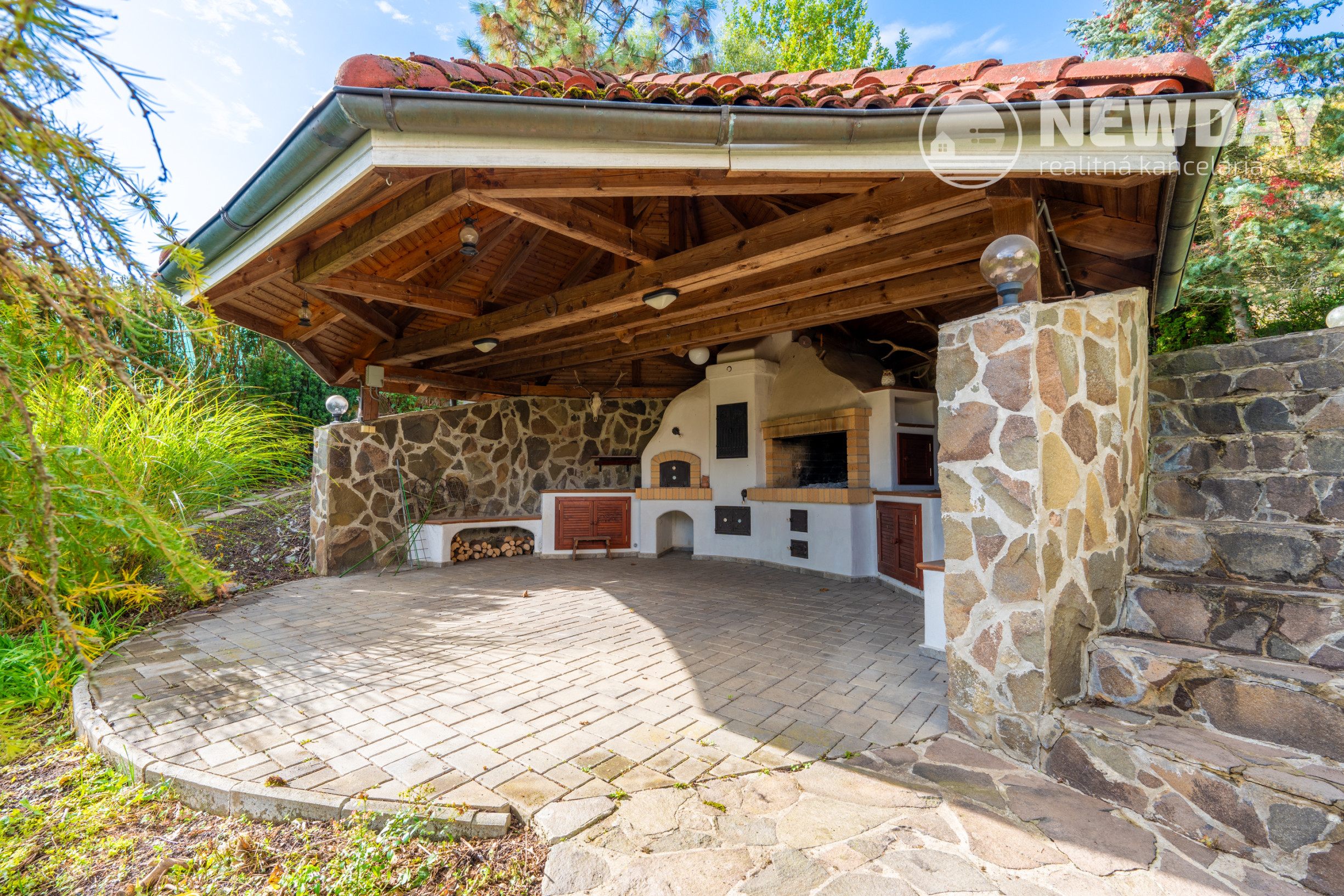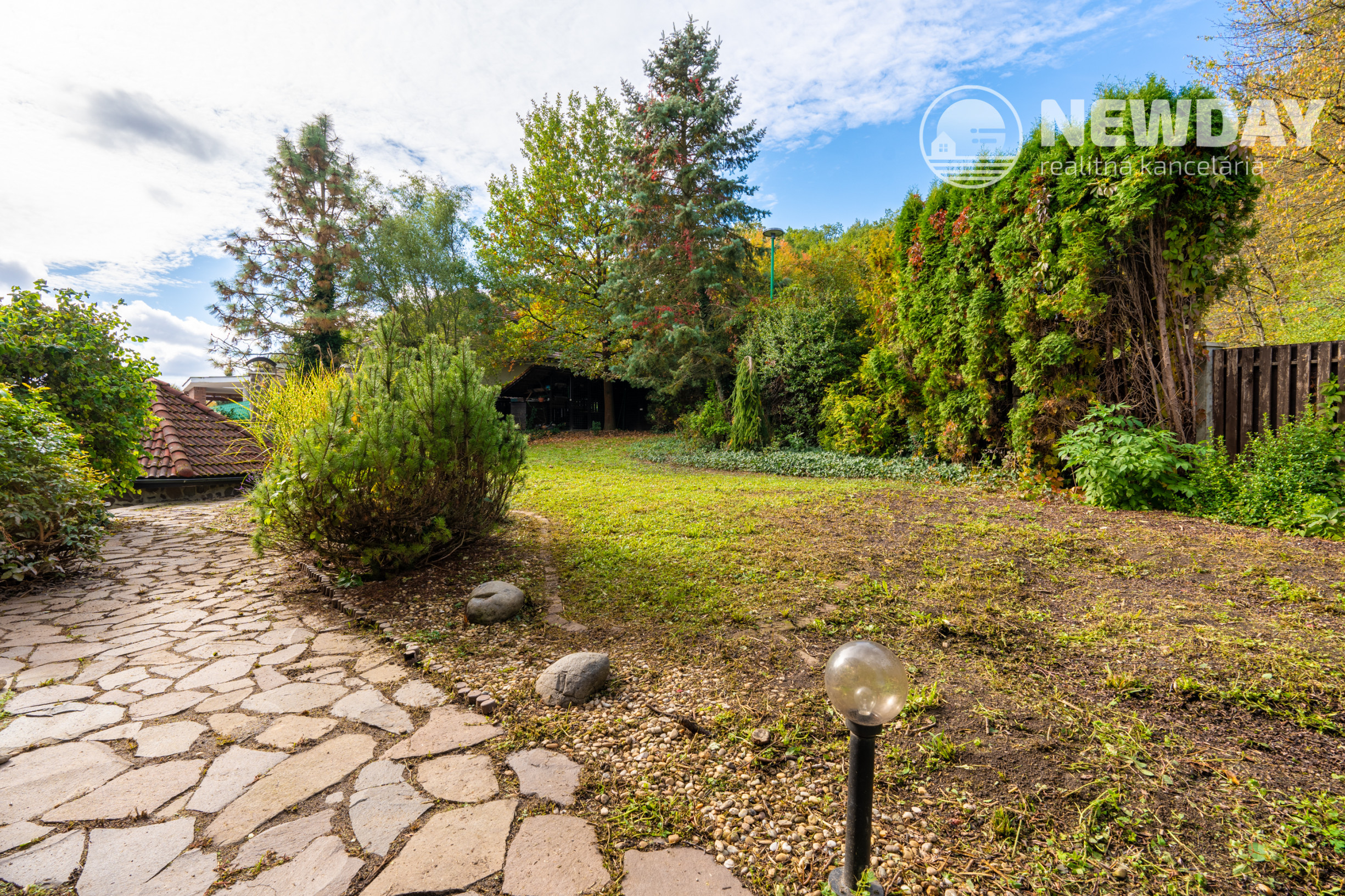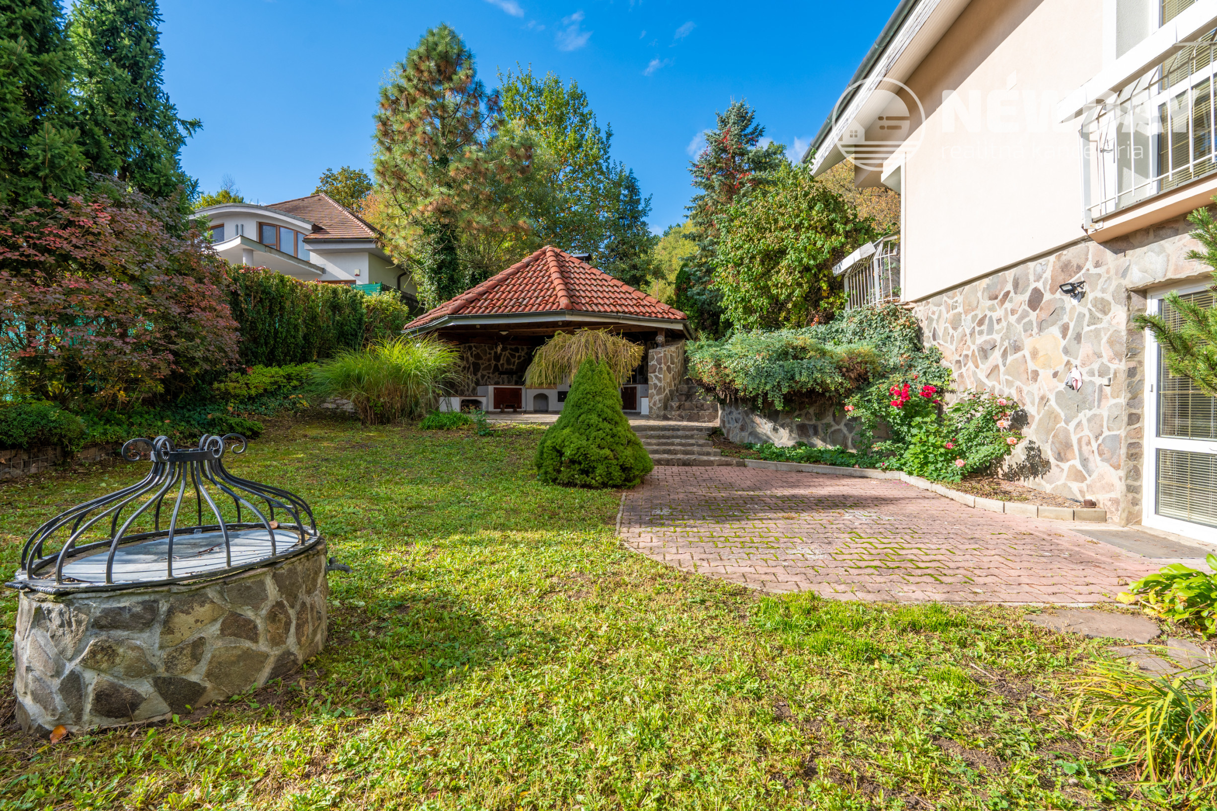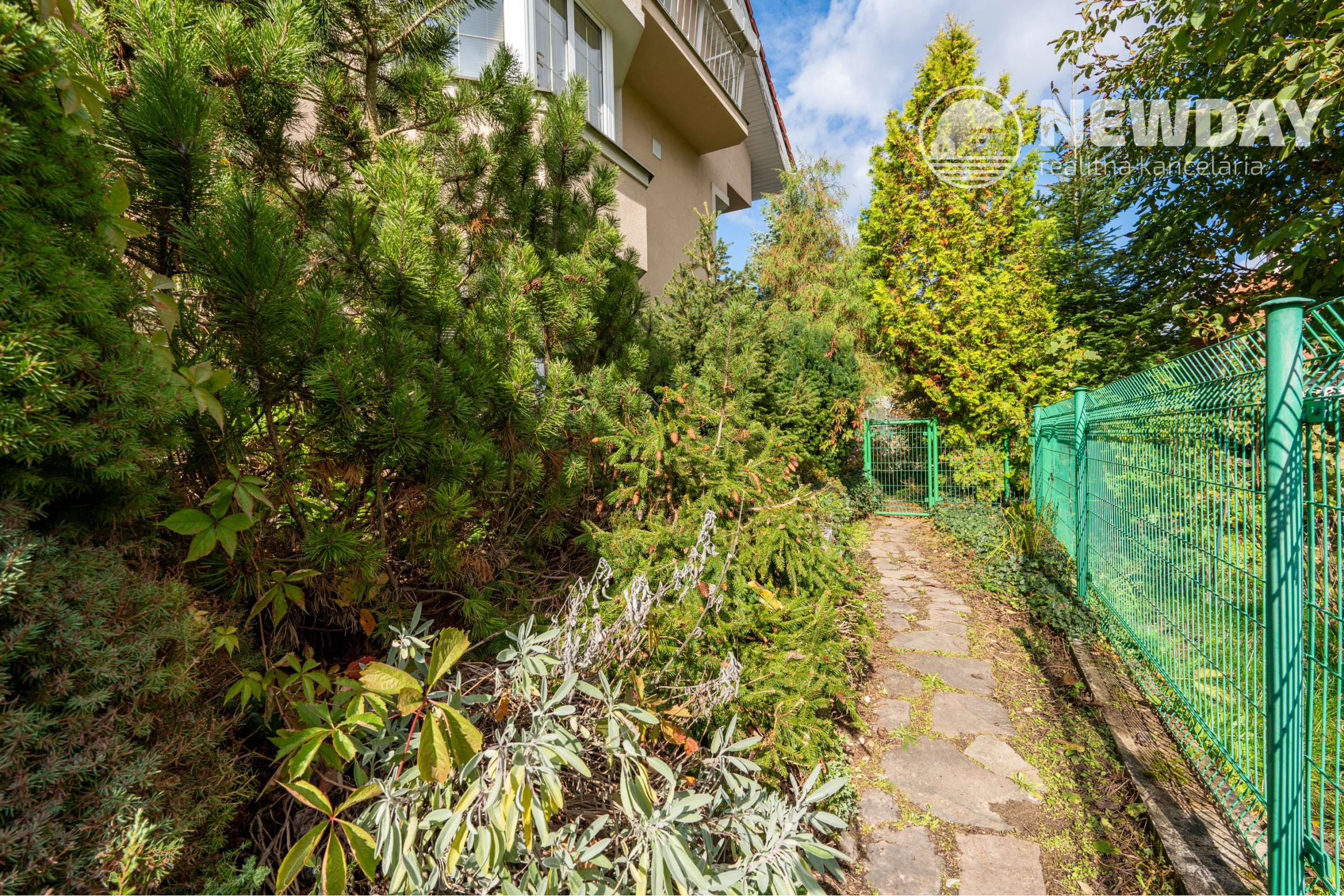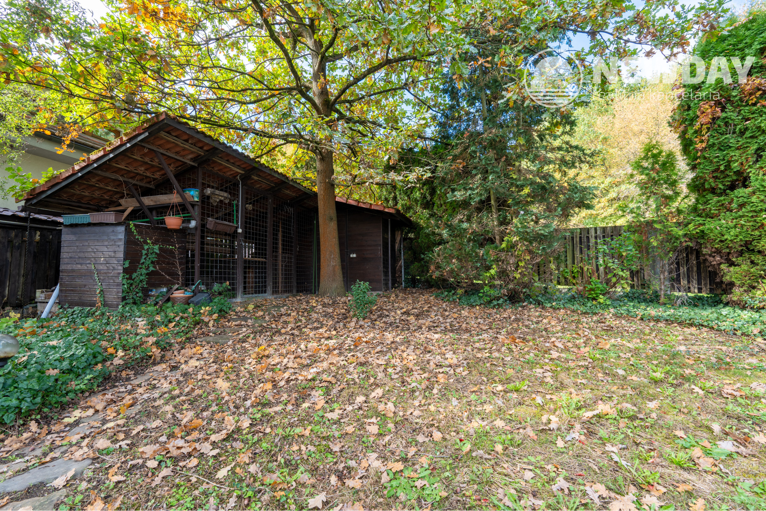 K domu patrí krásna juhozápadne orientovaná záhrada s osadenými kamennými chodníkmi s osvetlením, s vysadenou trávou a okrasnými rastlinami a drevinami. Je rozdelená do dvoch častí: spodná časť so studňou, s plnohodnotne vybaveným murovaným prístreškom s pecou, záhradným grilom a posedením a vrchná prevažne trávnatá časť s kotercom.