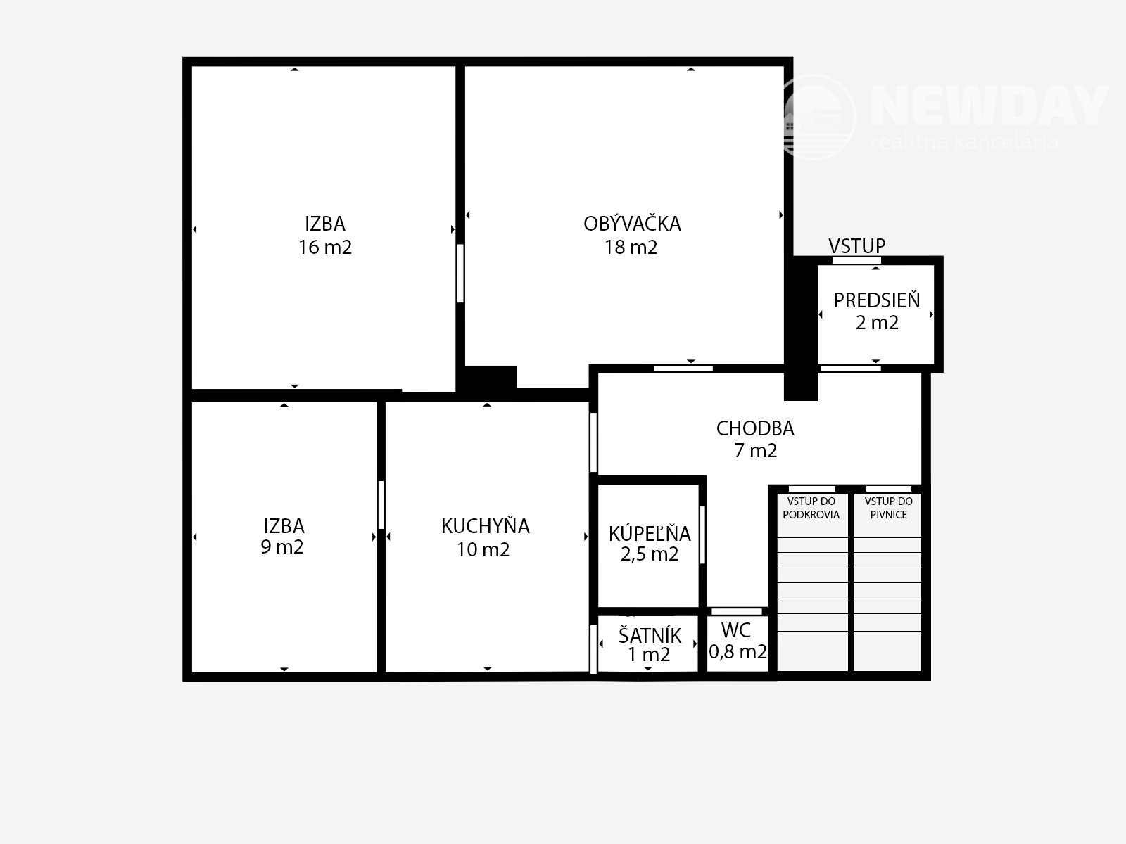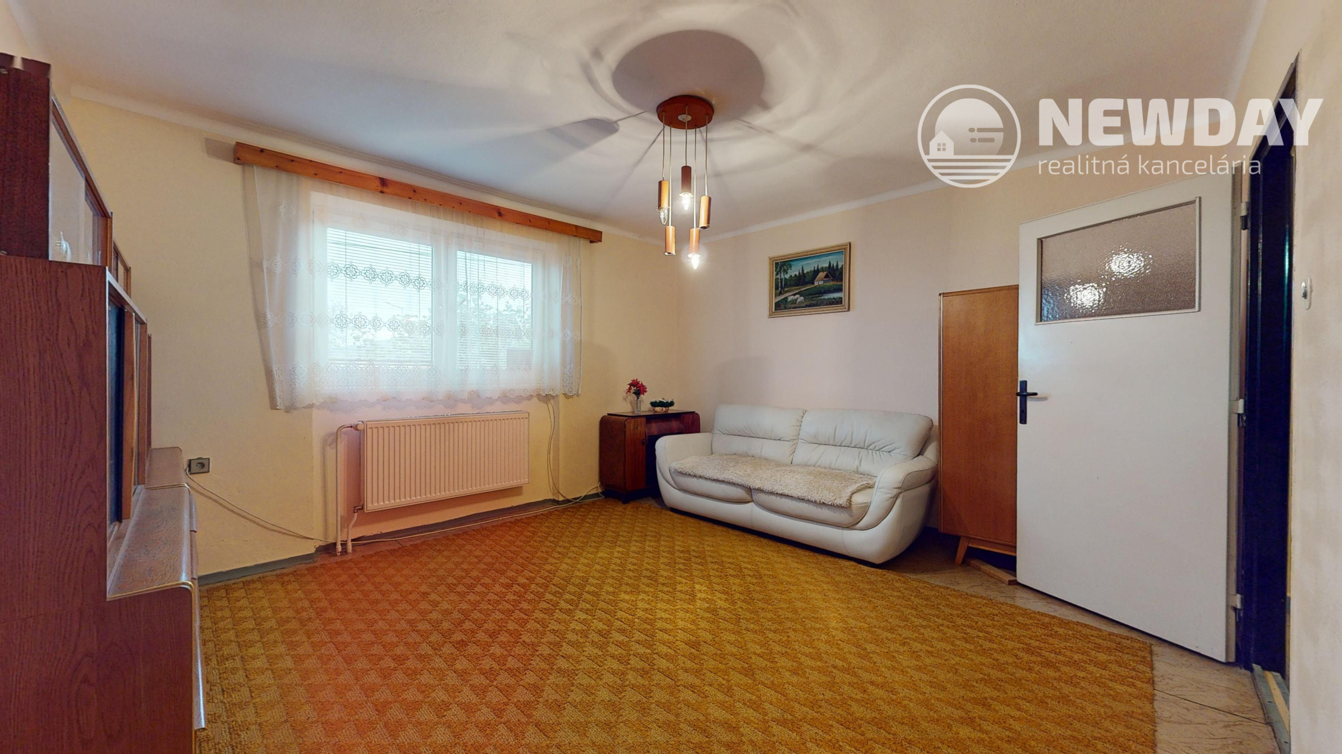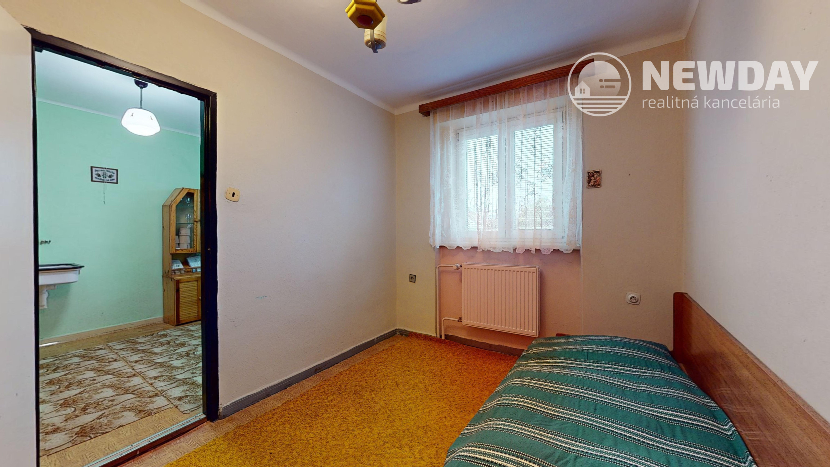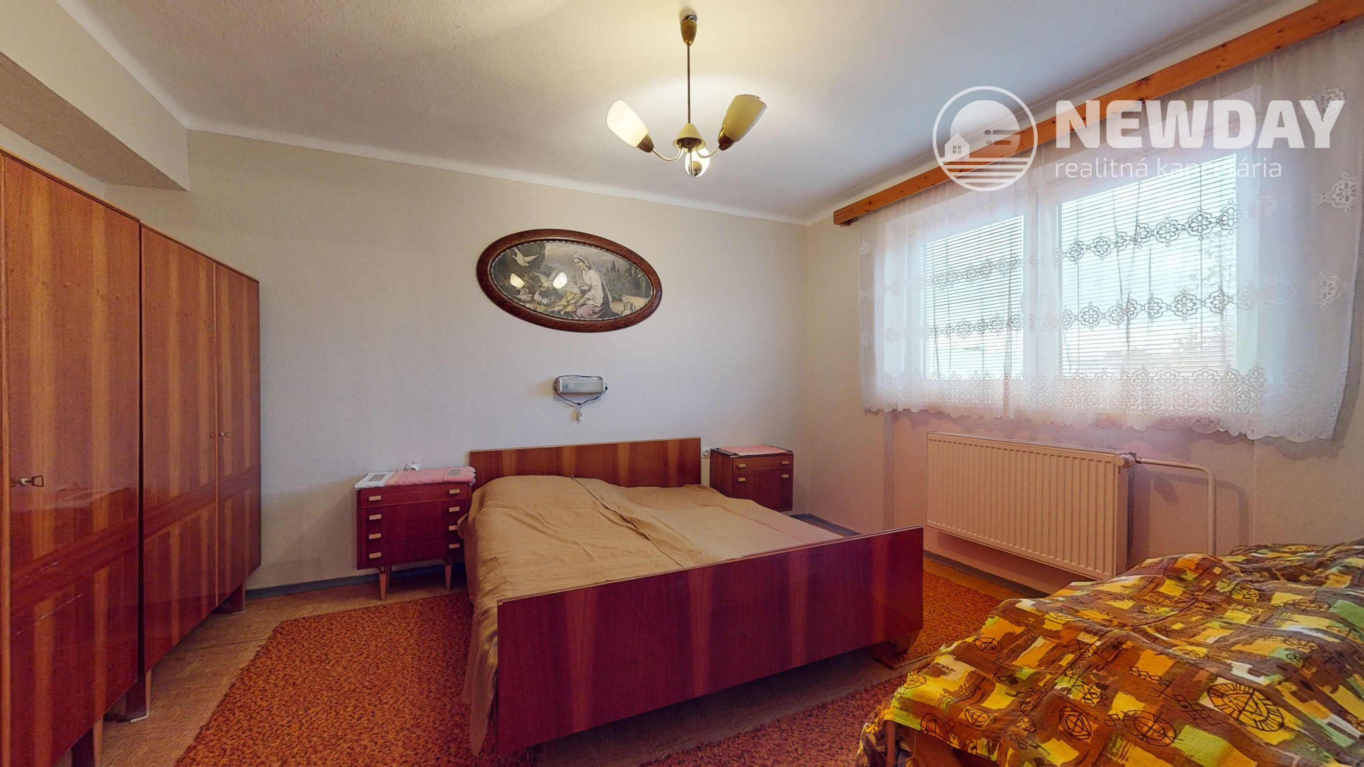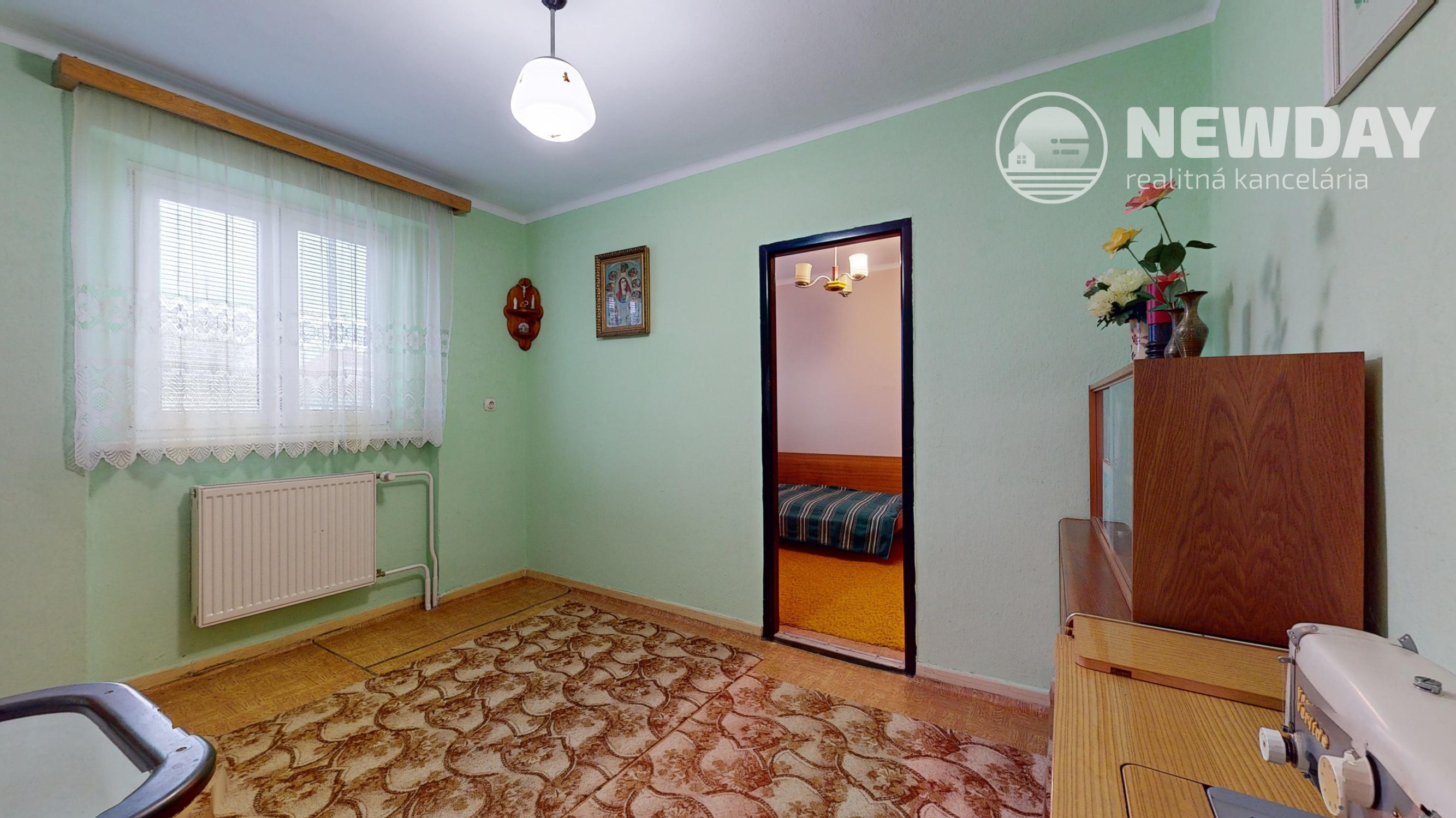 Základnou obytnou časťou domu je 1. NP (3-izbové - viď virtuálna obhliadka) s úžitkovou plochou 68 m2, ktoré tvorí zádverie, chodba, samostatná toaleta, kúpeľňa, priechodná kuchyňa so špajzou, z ktorej sa vchádza do juhozápadne orientovanej izby a napokon priechodná severovýchodne orientovaná obývacia izba, cez ktorú sa dá vstúpiť do spálne s rovnakou orientáciou.