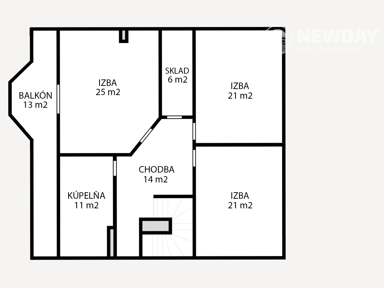 2. POSCHODIE (podkrovie): dve východne orientované priestranné izby, západná spálňa s lodžiou, technická miestnosť, chodba a kúpeľňa s toaletou